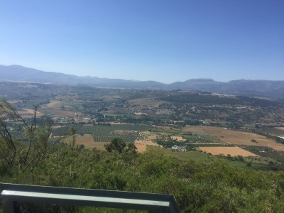 We started from the villa, only one of us had a hat but Chris had a selection ranging from a 1920s style bonnet to a rather dapper safari hat. Hats are important, as we were to discover later. Whilst tours can be tailored to your specific requirements we had asked Chris to choose on our behalf so, on hearing that we had never seen Ronda’s bridge from the bottom of the gorge 'el tajo', Chris determined to remedy this right away. We set off and soon discovered that the phrase "hang on to your hat" is very fitting whilst riding in the back of an open top jeep. The erstwhile gentle breeze became a veritable gale when travelling at 30mph and we had to stop twice for the safari hat.